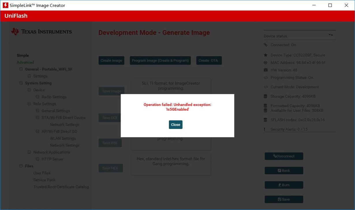 如题,cc3220sf按照例程用uniflash下载出现的错误