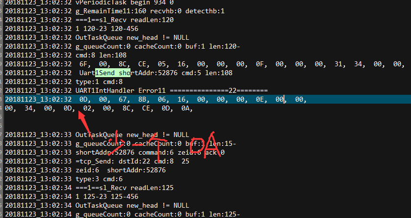 请教TI工程师,串口按字节来接收。在UART1输出调试信息后,UART0开始接收数据。 但偶尔会丢失几个字节,有哪些可能的原因了?下面是接收代码块,另一端串口0发送数据,和3200接收数据(丢失了一个0X0A)