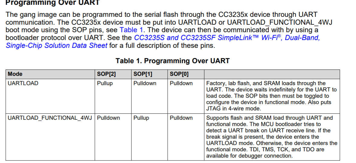 我参照 http://www.ti.com/lit/an/swra646/swra646.pdf 的说法 通过UART烧录CC3235, 发现烧录不进去,因为文档说的也是比较乱,也不知道我操作的对不对,操作步骤见附件。