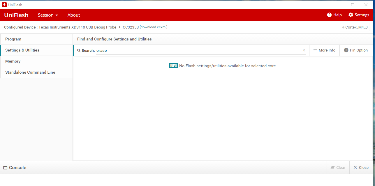 提示这个INFO No Flash settings/utilities available for selected core.