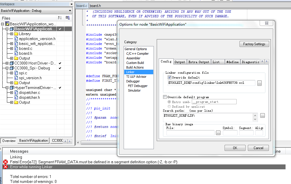 我用IAR 6.10 按照CC3000Basic Wi-Fi example application for MSP 430里面的对BasicWiFiApplicaton进行rebuild all 时