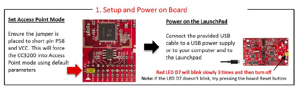 Ti工程师,您好!最近公司购入你们的CC3200 LaunchPad评估套件,根据SDK中Quick Start Guide的方法测试,有不一样的结果,文件描述是加电后 red LED D7 blink slowly 3times and then turn off,然后其他设备可以搜索到它的wifi信号,但我的实际情况是加电后大概3s后LED D7不停闪烁,并且搜索不到wifi信号,reset后也是一样。请问这个现象是否正常,或者是不是出场的固件程序不一样?由于是头一次接触这方面的东西,所以想在自己动手前弄清楚一些,请帮忙解答一下,谢谢!