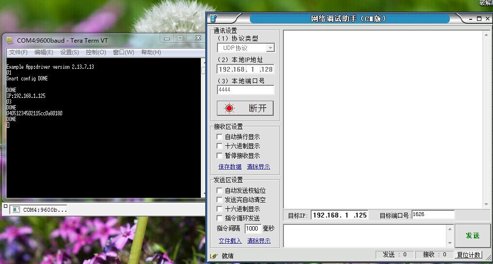 在硬件与软件正确配置后,用Tera Term与手机对应app配合进行smart config调试成功后,