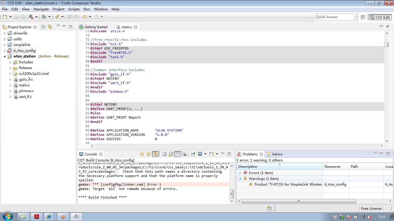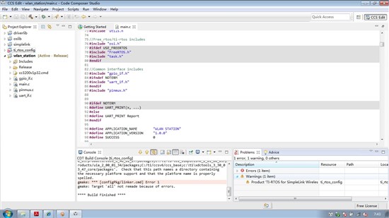 新到的开发板,按照《CC3200 SimpleLink™ Wi-Fi® and IoT Solution  With MCU LaunchPad™ Getting Started Guide》的操作,导入工程后编译不通过,工程前面有感叹号和叉,请问哪儿出了错了,为什么官方手册没有这个了?不胜感激....