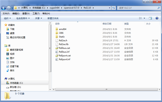 我ftd目录是:C:\cygwin64\openocd-0.7.0\ftd2.10