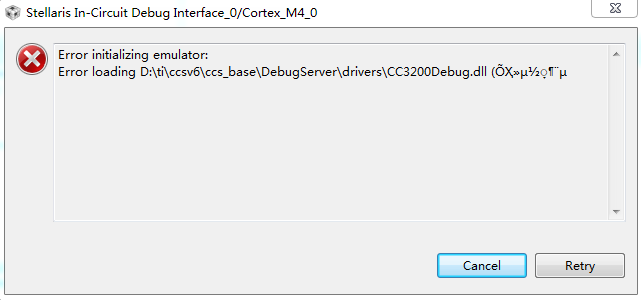 按照CC3200-Getting_Started_Guide.pdf指导烧写程序,当按Debug快捷按钮时,出现如下错误: