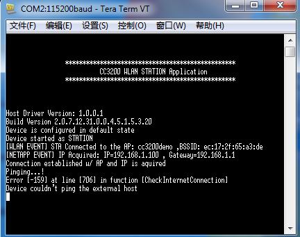我使用IAR 7.2 download and debug 去 run "getting_started_with_wlan_station" example, 但 Tera Term卻顯示如下: