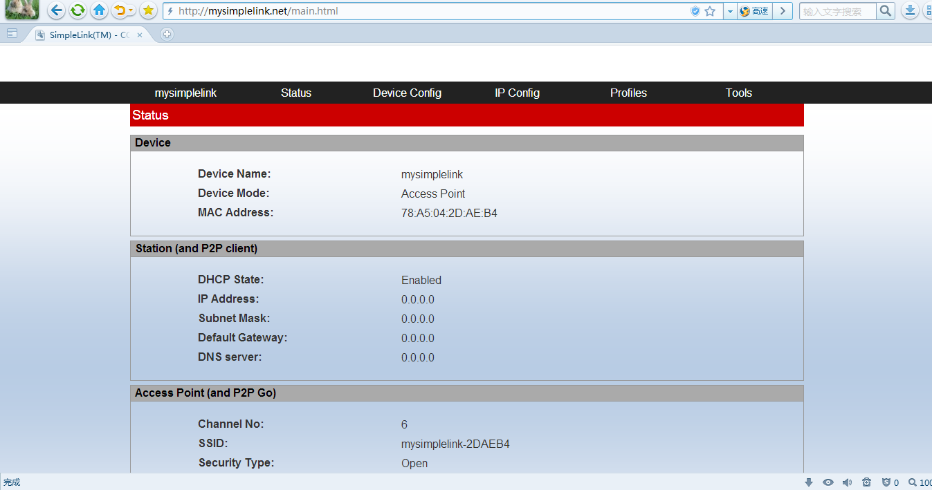 使用CC3200SDK中的http server的AP模式,mysimplelink.net内无Dome功能