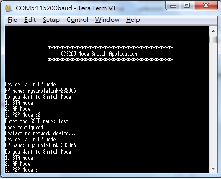 您好,我购买了一套CC3200 LauchPad rev3.2,使用mode_config sample code 測試ap mode,更改ap名稱.無法變更ap名稱,sl_Wlanset 並沒有return任何錯誤,ti提供的founction code 未完成嗎?如附檔tera term