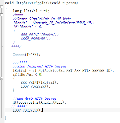 我现在把HTTPServer中关于wifi starter配置的程序加了进来。我想达到的目的是,cc3200上电后为STA,使用wifi starter配置连接到路由,然后敲网页名称就可以进"camera_demo.html".