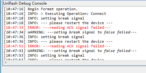 用uniflash给cc3200烧写程序,首先要format,但是第一步就出现错误,根本无法往下进行。正在郁闷中,求解。之前烧写程序好好地,一点问题没有,今天就出现这么个问题,网上找了很多资料,都没找到这个问题。正在郁闷中,求解,谢谢!