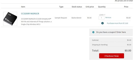 我想申请CC3200 为什么 提示 “Item no longer available. Please remove.”