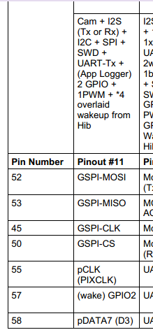 你好,预打算以CC3200的SP为主,驱动一个外部SPI接口的器件,切不能喝Cmaera接口引脚冲突,在DataSheets上看到如图引脚功能指引