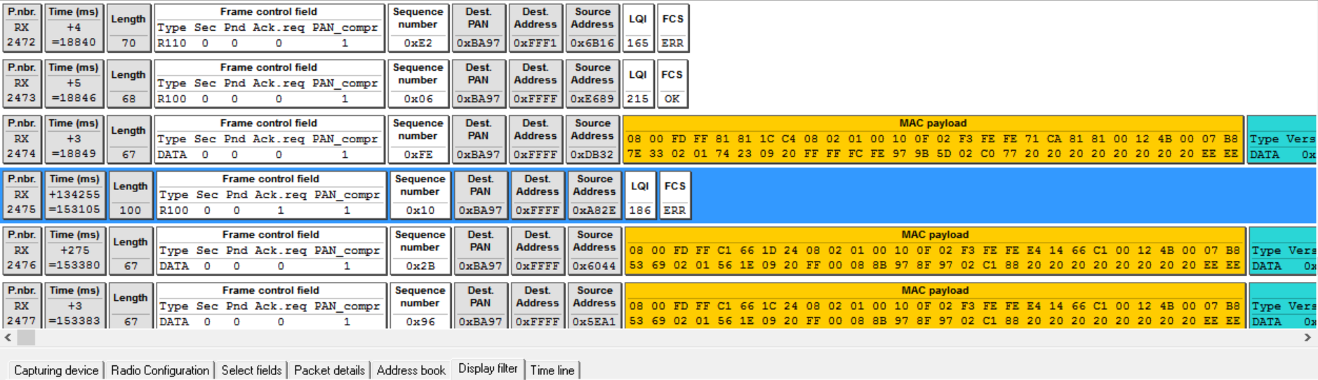 sniffer版本:CC2531 dongle USB和 SmartRF_Packet_Sniffer_2.18.1