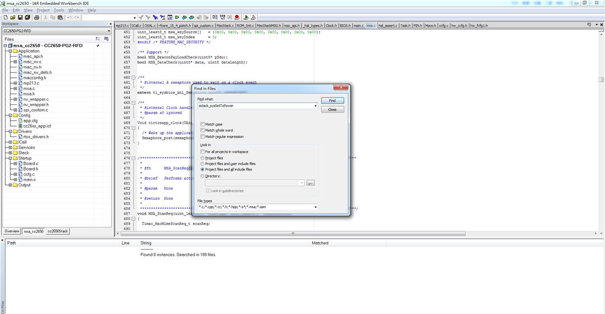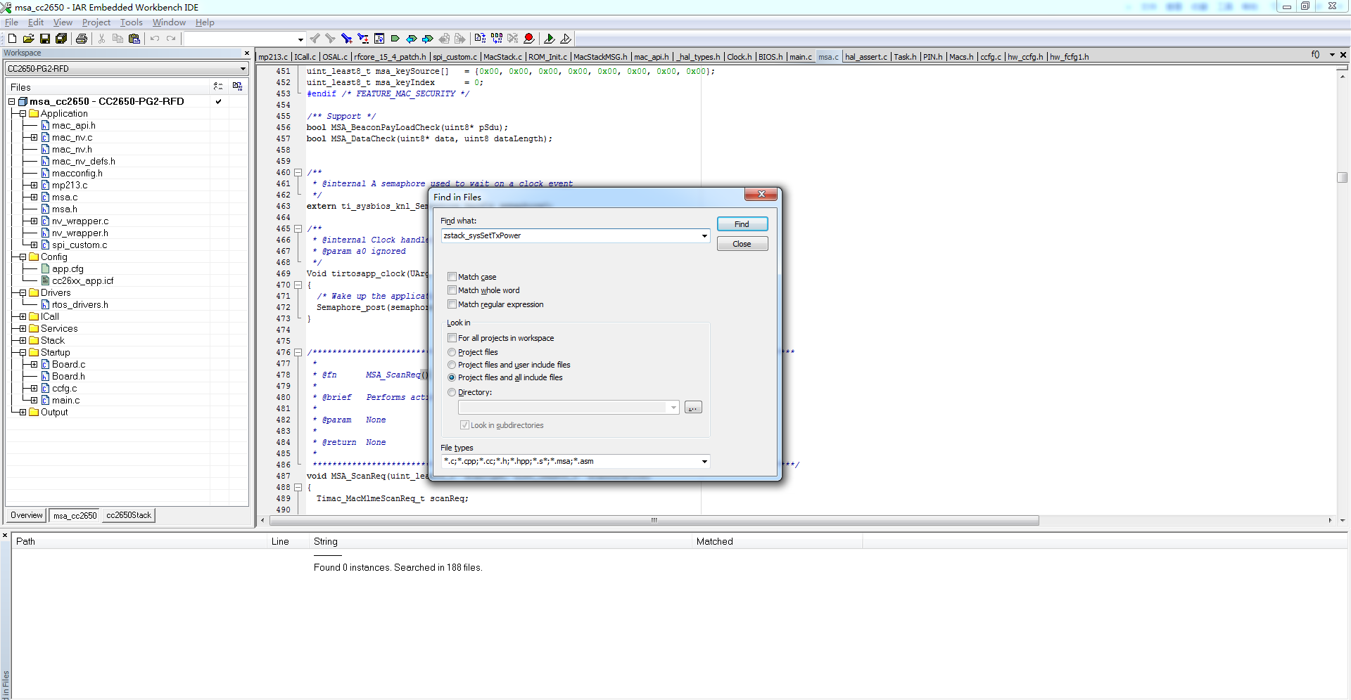 但是我在现在的协议栈里面找不到这部分函数啊,协议栈的版本是timac_1_05_02_43299。IAR打开工程包,搜索zstack_sysSetTxPower字段没有找到相关的内容...请问这个应该怎么修改射频功率呢?