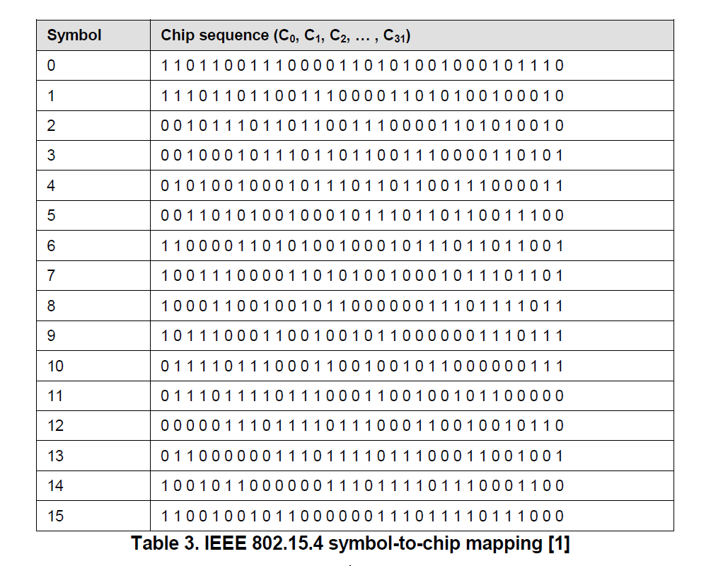 如果底层是O-QPSK,那么symbol-to-chip mapping就是这个表