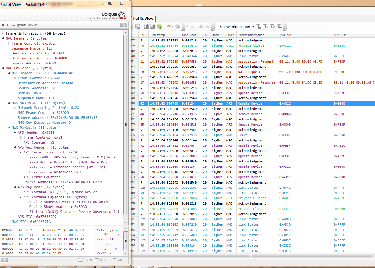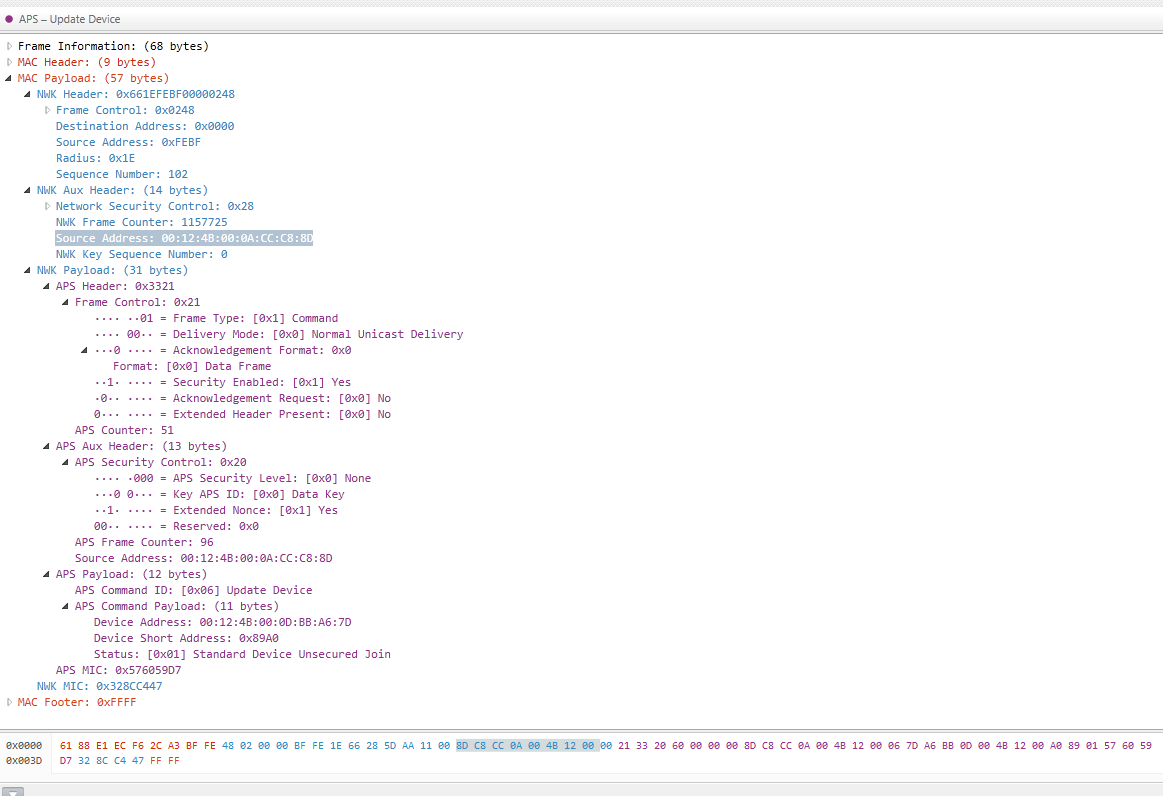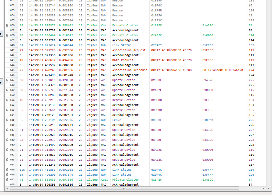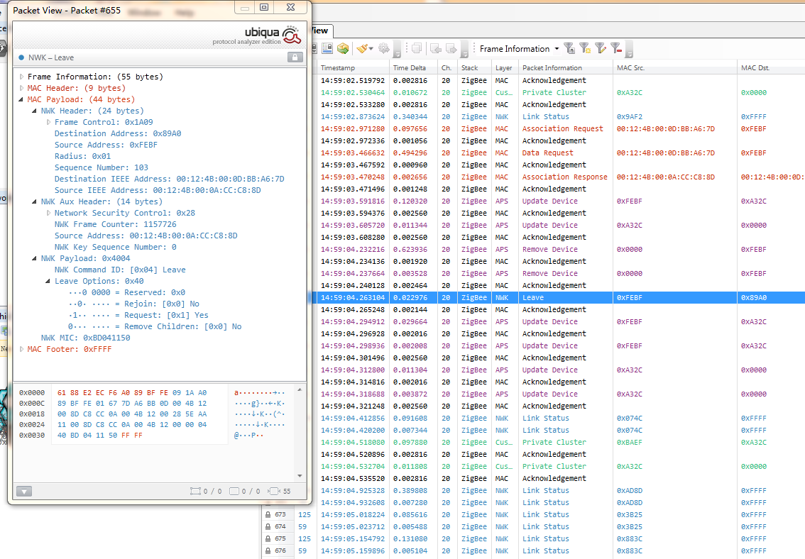 如题,在进行zigbee组网测试时,发现出现了设备无法入网的问题,抓包看入网流程在Association Response 后没有 Transport Key,抓包看是路由给协调器发了一条Update Device ,协调器回复的是 Remove Device ,随后路由发了Leave指令给设备,导致入网不成功,想请各位帮忙分析是何原因,如何解决呢?