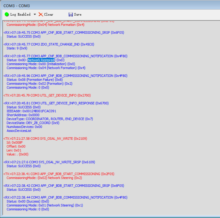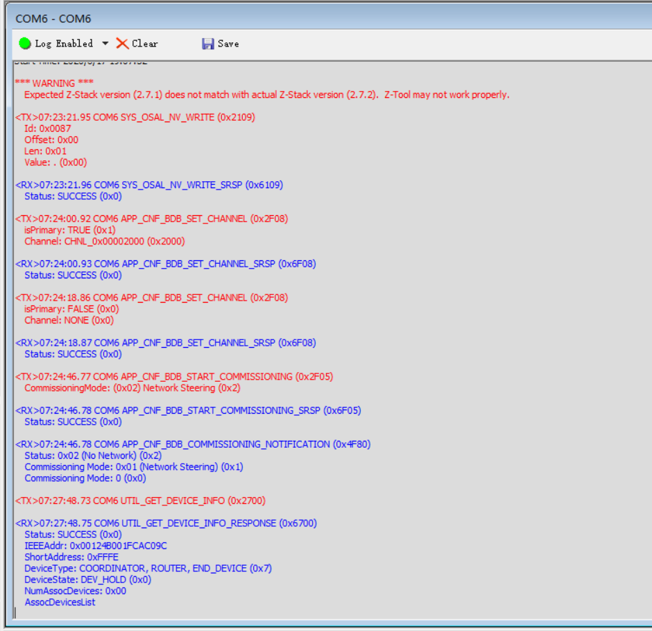 根據你的UTIL_GET_DEVICE_INFO_RESPONSE看起來你的協調器成功組網、沒有什麼問題