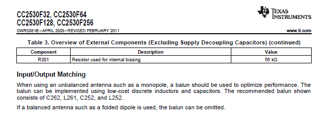 CC2530-RBIAS 电阻值设置为多少依据是什么?