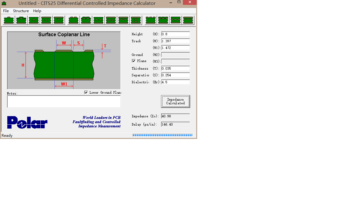 这个是从TI官方下载的CC2530的评估板PCB,上面说板厚是0.8mm,可是我把他的参数用阻抗软件计算后得到阻抗是40.98。