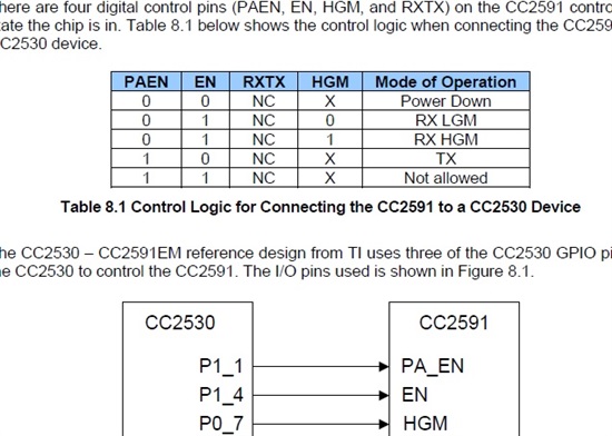 TI发布的 Using CC2591 Front End with CC2530/1 里写到: