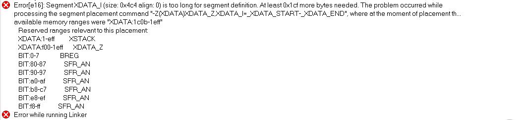 另外 既然XDATA内存不足,那么就把一些比较大的数组定义到CODE区,这样可以节省出XDATA内存;