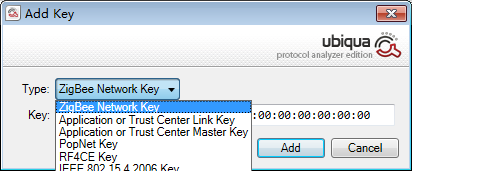我用的Z-Stack Lighting 1.0.2协议栈,Zigbee Light Linkg开发套件,现在对协议栈还不是很熟悉。想用Ubiqua抓包,但是网络是加密的,需要添加KEY到Ubiqua中,