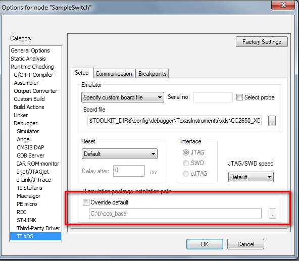 用的是这个路径下面的例程C:\ti\simplelink\zstack_home_1_02_02a_44539\Projects\zstack\ZNP\CC26xx IAR版本是7.4